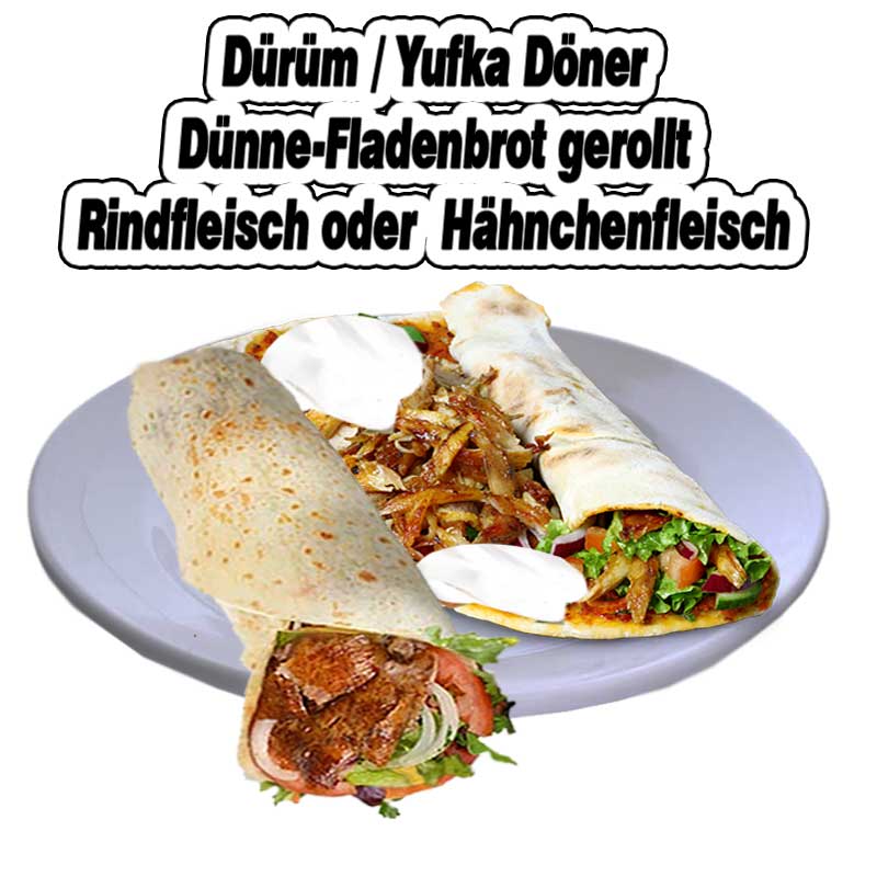 Dürüm 4,A,F,K,C,J,G Teigrolle mit Fleisch & Beilage